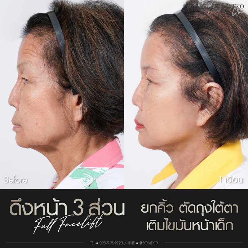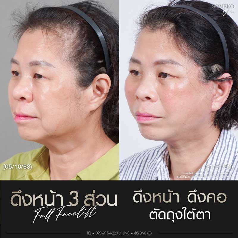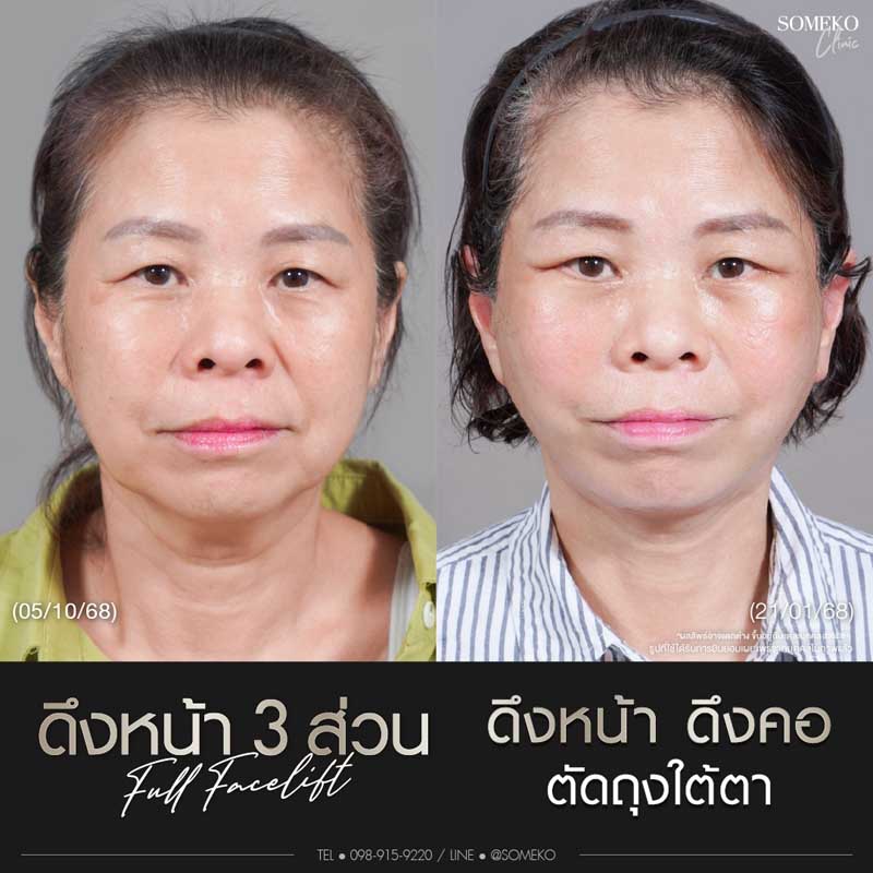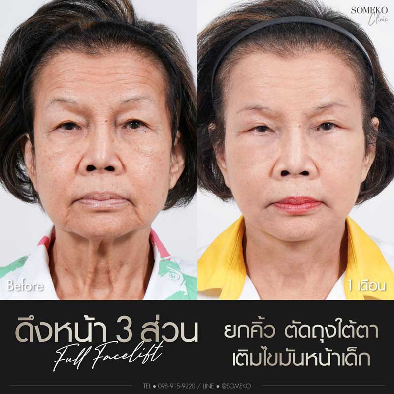 ดึงหน้า 3 ส่วน ยกคิ้วตัดถุงใต้ตา เติมไขมันหน้า